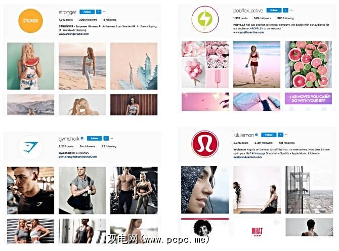 定义您的热情,然后围绕更广泛的类别发展您的社交个性。在这里,您将看到四个完全不同的品牌,它们全都属于健身伞,但每个品牌都为餐桌带来了不同的风味。
