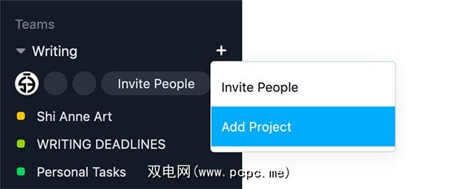 要创建新项目,请转到侧边栏。在团队下,单击 +>添加项目。