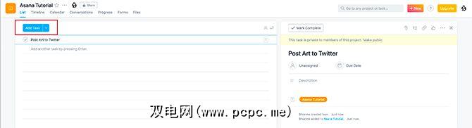 在列表下,单击添加任务。这将自动在工作区的右侧添加任务卡。在这里您将填写您的详细信息。