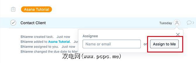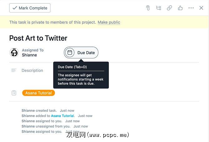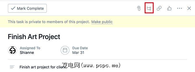 如果主任务设置为私人,则需要为您分配子任务。要快速分配任务,请单击人员图标,然后单击分配给我。
