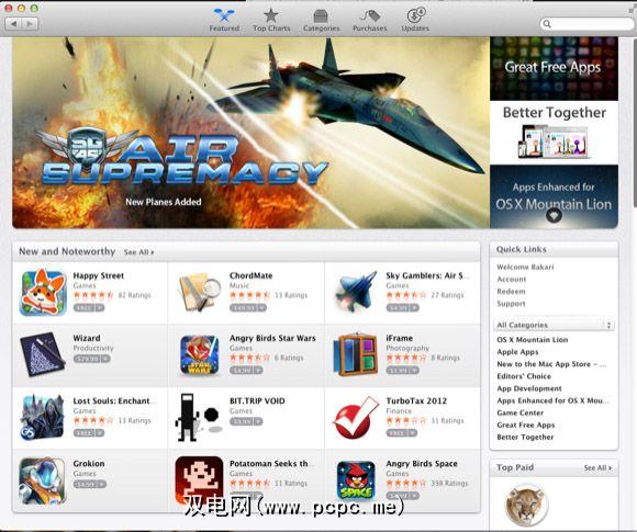 类似于Mac版本,App Store会向您介绍功能强大且具有新闻价值的应用程序,以及数十种应用程序类别,以及可以根据您的兴趣和需求进行浏览的Top Charts应用程序。