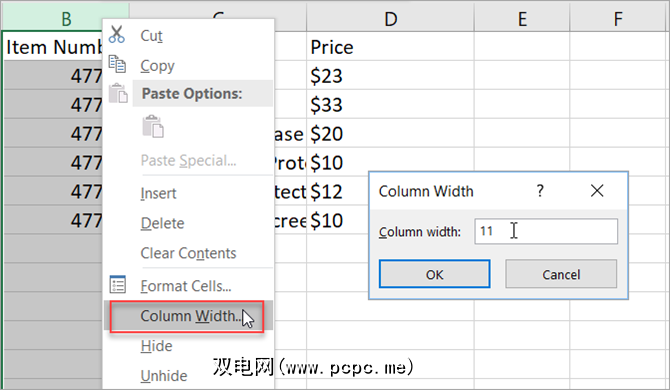 首先,选择并右键单击列或行。在上下文菜单中,根据要更改的内容选择列宽或行高。在出现的弹出窗口中,您将看到当前的宽度或高度。将其替换为所需的数字,然后单击确定。
