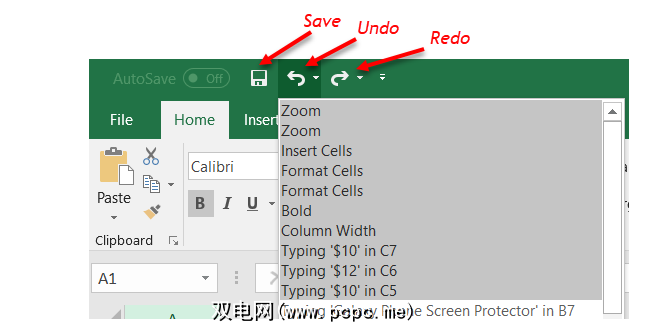 与选项卡和功能区一样,如果您使用其他Microsoft Office应用程序时,您应该熟悉快速访问工具栏。但是,如果不是这样,则这是Excel窗口左上角的工具栏。这很重要,因为它使您可以快速撤消或重做操作,并保存文件。