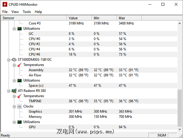 常规基准测试将衡量三个简单变量:时钟速度,温度,和电压。 HWMonitor 提供此确切信息。尽管使用监控软件并未正式成为基准测试,但HWMonitor将允许用户在整个基准测试过程中跟踪不同的读数。随着GPU和CPU的努力工作,温度读数将升高。