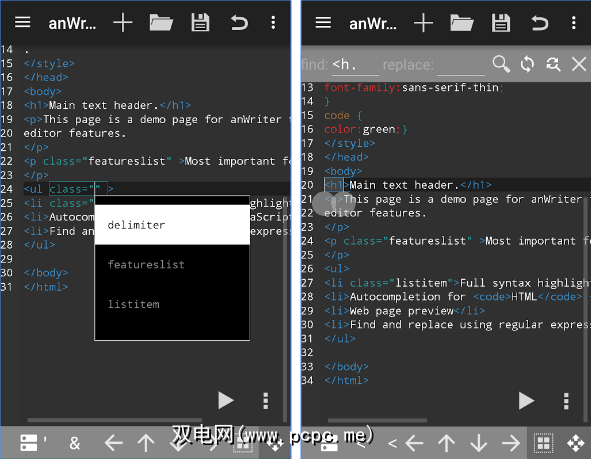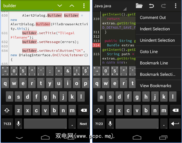 DroidEdit可与Windows上的Notepad ++媲美。除了通常的HTML,PHP,CSS和JavaScript语言外,它还支持C,C ++,C#,Java,Python,Ruby,Lua,LaTeX和SQL。在我看来,该应用程序还拥有该列表中所有应用程序中突出显示的最佳语法-颜色对比更加醒目且易于跟踪。