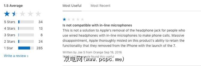 2016年,iPhone上的耳机插孔消失了。因此,这意味着随附的适配器可以正确执行此操作吗?也许不吧!随附的Lightning至3.5mm耳机插孔适配器在Apple网站上具有高达1.5星的亮度。