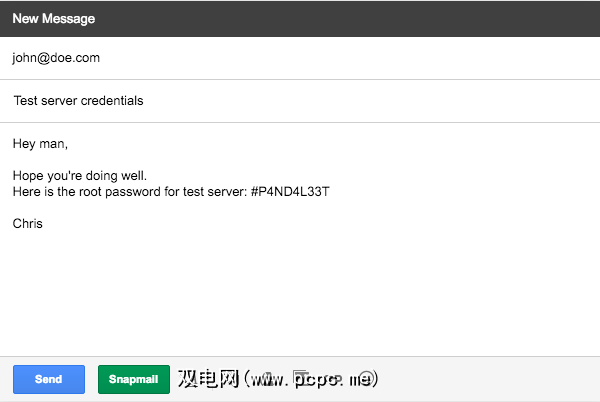 但是现在有一些“自毁"电子邮件服务可以发送您的消息为您提供安全保护,并且还要求接收者在其消失之前阅读邮件的时间限制为60秒。我最喜欢的是SnapMail,可以使用Chrome扩展程序将其集成到Gmail中。