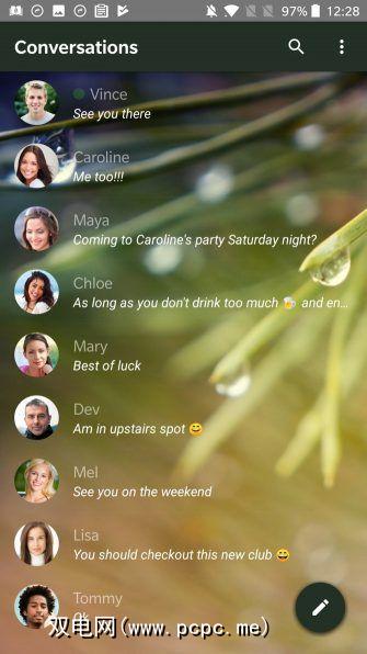 该应用程序可让您固定聊天,存档旧主题,将用户添加到黑名单等等。您可以使用该应用共享消息,照片和位置等富媒体。