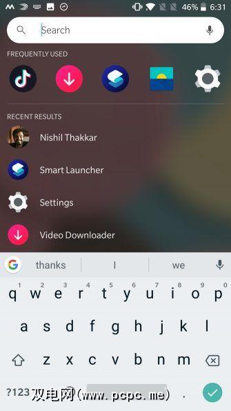 一旦安装了Evie,您只需在主屏幕上向下滑动即可开始输入。 Evie将立即显示应用程序,联系人,文件以及以后的Web搜索结果的相关结果。