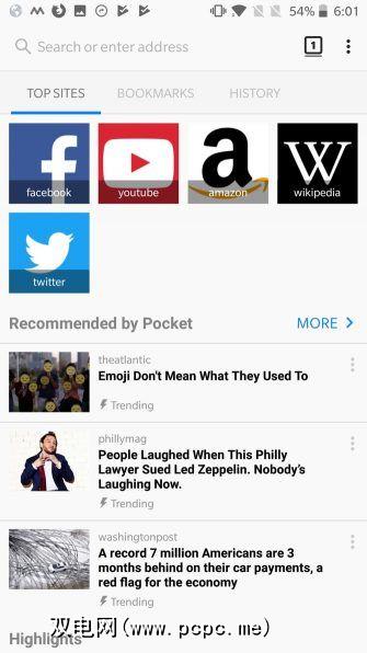 如果您在台式机上使用Firefox,也可以使用在Android上也是如此。出色浏览器的所有功能都在这里-隐身模式,直观的选项卡切换,书签同步。