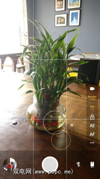 打开应用程序时,您会找到基本的手动摄影工具在右下角。顶部没有巨大的工具栏。通过快捷方式,您可以快速更改快门速度,ISO,聚焦,白平衡和曝光。您可以在自动和手动模式之间快速切换以进行对焦和曝光。如果您的设备支持,也可以使用RAW拍摄。