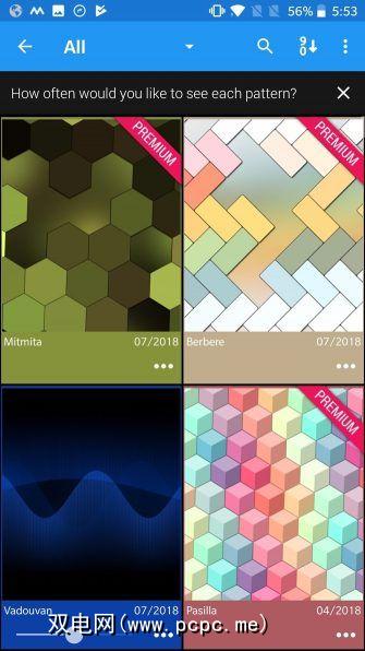 您可以在预览中向左滑动以切换颜色,向右滑动以切换图案。向上滑动以生成新壁纸。当您找到喜欢的东西时,只需点按大选中标记按钮即可将其设为您的壁纸。