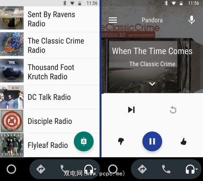 普及网络广播的服务就在Android Auto中。在普通应用中登录帐户后,您可以滑出左侧边栏以选择您的电台之一。然后它将继续播放音乐。