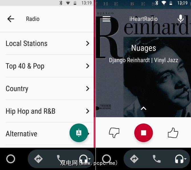 在Android Auto中,您可以轻松收听到喜欢的电台或根据流派找到新的喜欢的电台。