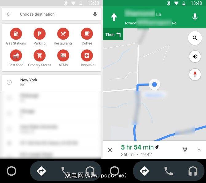 Google Maps的Android Auto版本使用简化版界面,可以轻松导航而不会造成很多混乱。