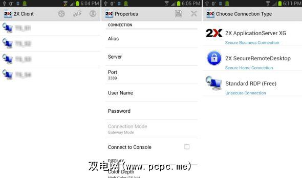 2X的启动屏幕非常简单,直观。您可以选择启动已经创建的连接,添加新连接或进入应用程序设置。如果您要创建新的连接,则2X会为您提供一些选择-一个是标准RDP连接,另外两个则使用2X的服务器并且是收费服务。如果您需要普通RDP连接所不具备的功能和安全性,则可以考虑使用这些服务。