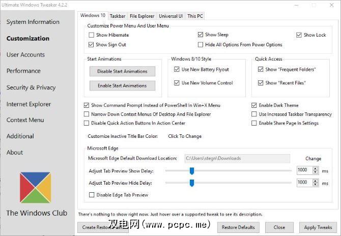 对于其他所有内容,Ultimate Windows Tweaker(UWT)都应处理。这个庞大的自定义工具可以在一处收集数十个很棒的Windows调整。其中许多可以通过注册表编辑进行更改,但是此实用程序使它们更加方便。