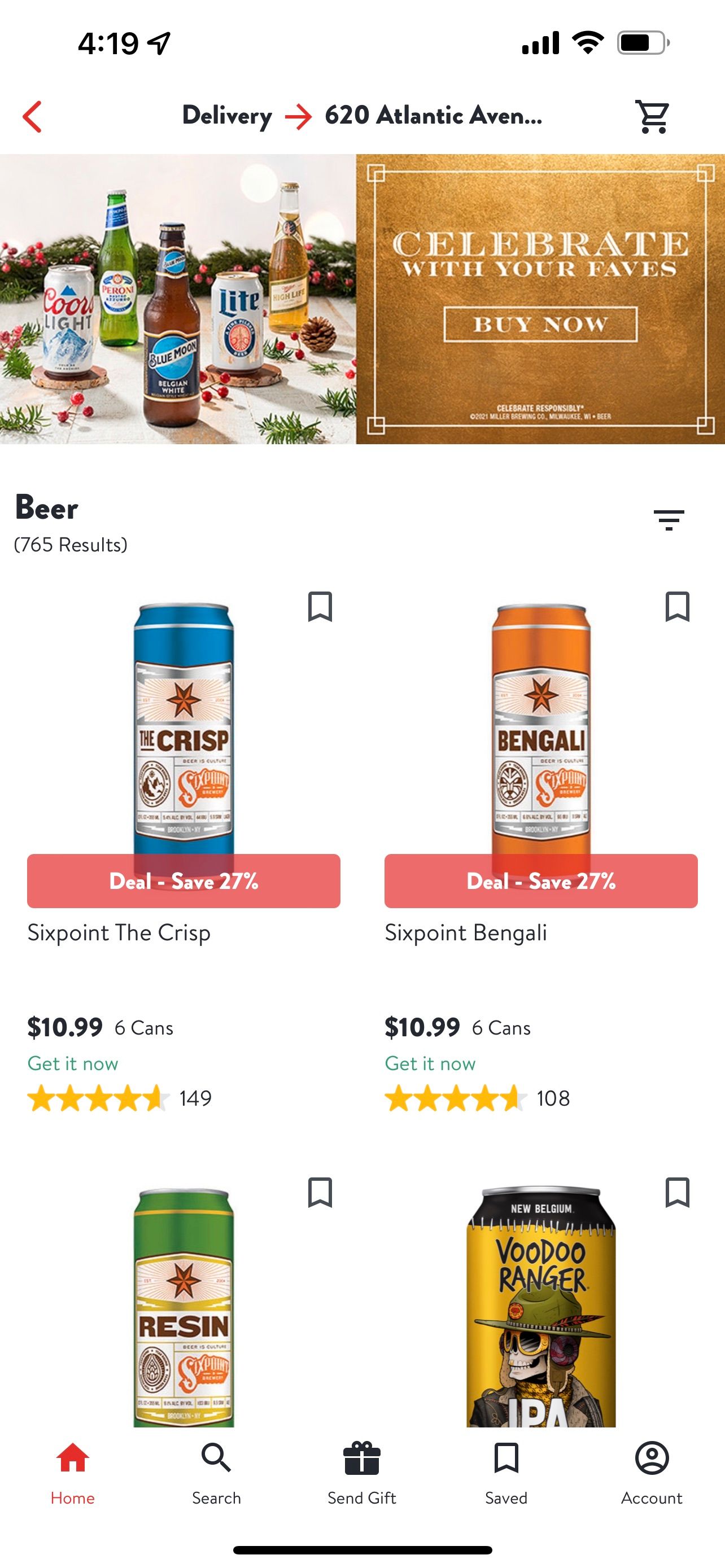 从当地商店订购精酿啤酒的另一种选择是 Drizly。这个应用程序提供了数以千计的新的和知名的啤酒可供购买。