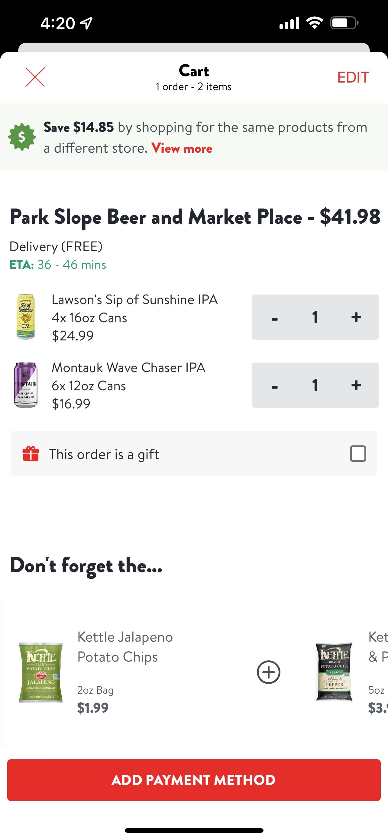 一旦您点击Place Order,Drizly 将在一小时或更短的时间内交付您的啤酒。不幸的是,并非所有地方都提供 Drizly,因此您必须在开始购物前进行检查。
