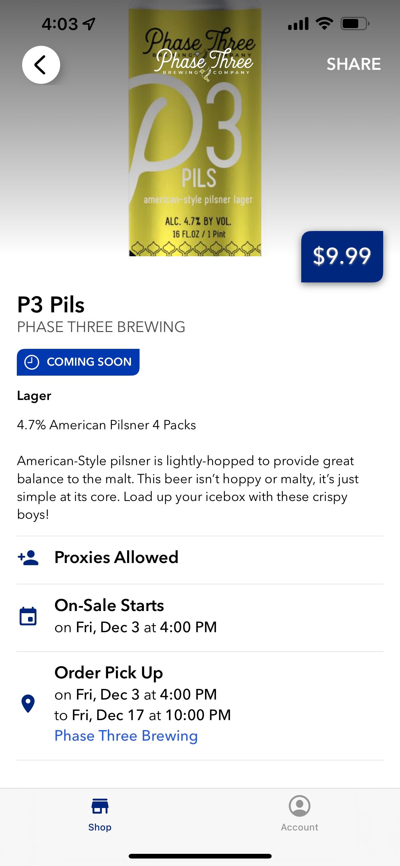 该应用程序的最佳功能之一是其预订功能,它使您可以预订难以获得的啤酒,然后将它们取走或运送到您家(在可用的州)。您甚至可以进入 Oznr 的随机抽奖,以获得购买需求最高的啤酒的机会。