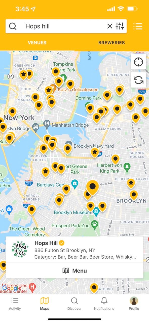 当您创建 Untappd 个人资料时,您将能够查看参与活动的当地餐厅和酒吧的点击列表,以根据您过去的评分接收推荐。