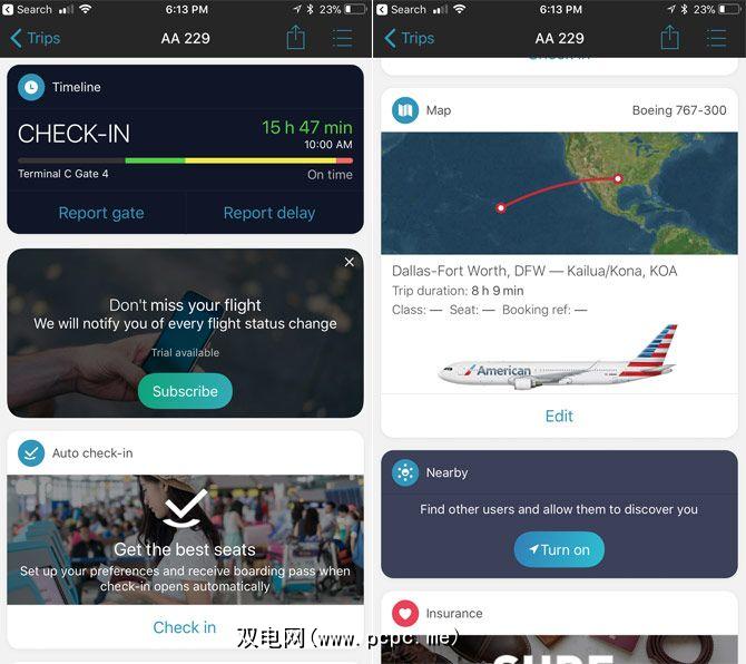 除了能够与TripIt帐户同步之外,所有停留信息都会自动显示在应用程序中。用户可以接收有关起飞或到达更改,登机口和航站楼更改以及航班状态更改的推送通知。从机场接送朋友或家人时,您还可以安排航班起飞和到达提醒。