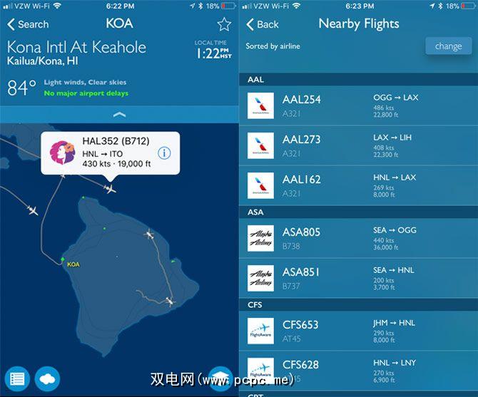 下载后,航班输入航班号,机场或路线即可访问。每次飞行都可以在地图叠加层上看到,该叠加层显示城市标签,实际飞行路线,当前雷达等信息。