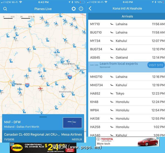 在iPhone中使用GPS位置,您甚至可以查看附近架空的飞机。