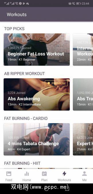 自定义水平也很高,因为您可以指定健身水平和目标。如果不适合您,这包括替换您锻炼中的锻炼。这些锻炼都是免费的,但是如果您想观看特定课程,例如冲浪风格的训练或瑜伽,则需要该应用的高级版本。
