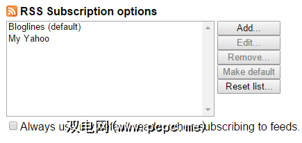 只要您访问支持RSS提要的页面,Google的RSS扩展程序就会自动在Chrome的多功能框中放置一个RSS订阅按钮。您可以通过单击下拉框中的管理选项将任何基于Web的供稿阅读器添加到扩展程序中,尽管您需要选择合适的URL作为阅读器。