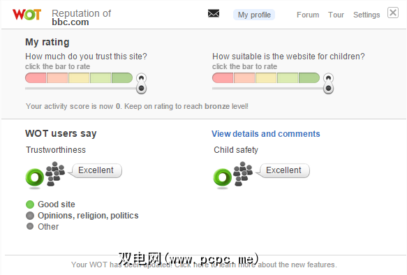 这是一种众包工具,可以根据站点的可信度,供应商可靠性,隐私,和儿童安全-帮助您安全浏览。
