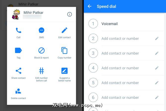 联系人操作:您自己的联系人也易于管理。长按任何联系人可获得快捷操作的快速菜单。其中包括一些有用的选项,例如在拨打电话之前编辑电话号码。
