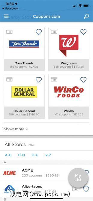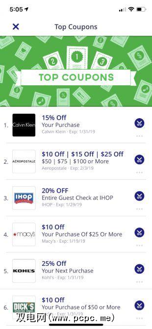 coupons.com也是优惠券和促销代码在线最热门的网站之一,它也为它的应用带来了节省。您会发现超过500美元的储蓄可以利用。