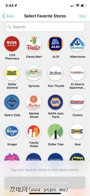 Flipp可以轻松成为您用于杂货店购物等的多合一应用程序。首先,请选择您最多购物的商店,以在应用程序中快速找到交易。
