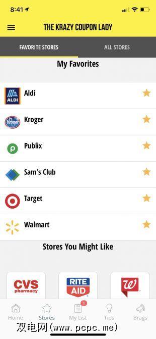 为帮助您找到最常使用的优惠券和交易,您可以在打开该应用程序时选择一些喜欢的商店首次。博客文章和有关这些商店的信息显示在主页选项卡中。您还可以找到许多数字食品杂货券和可打印版本。选定的优惠券将显示在应用程序的购物清单中。