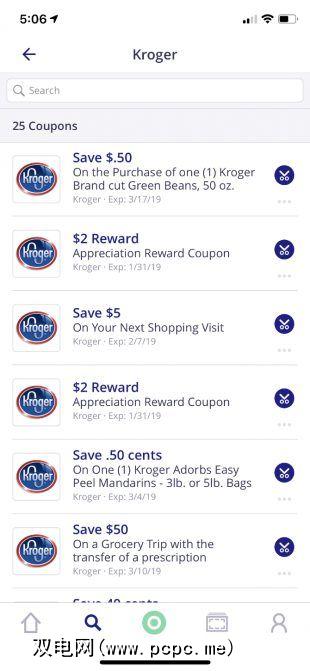 有两种不同的储蓄方式。首先,如果您拥有参与商店的会员卡,则可以将其链接到该应用,然后选择其他优惠券。结帐时,只需扫描卡,优惠券就会自动应用于总额。