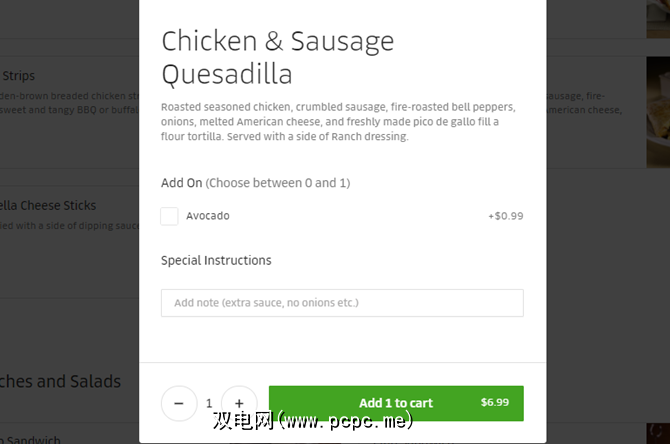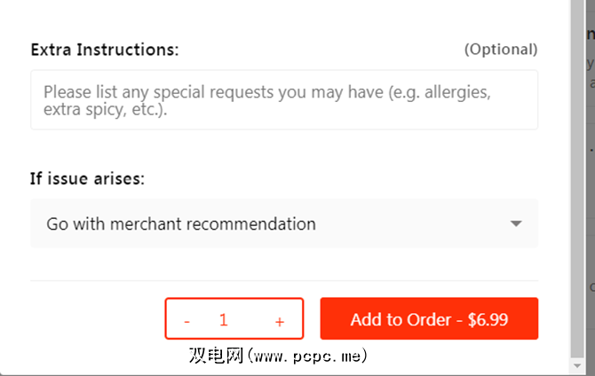 就像UberEats的订购过程一样,对于Doordash,如果有特殊需要,您还可以提供一些额外的说明或特定要求。