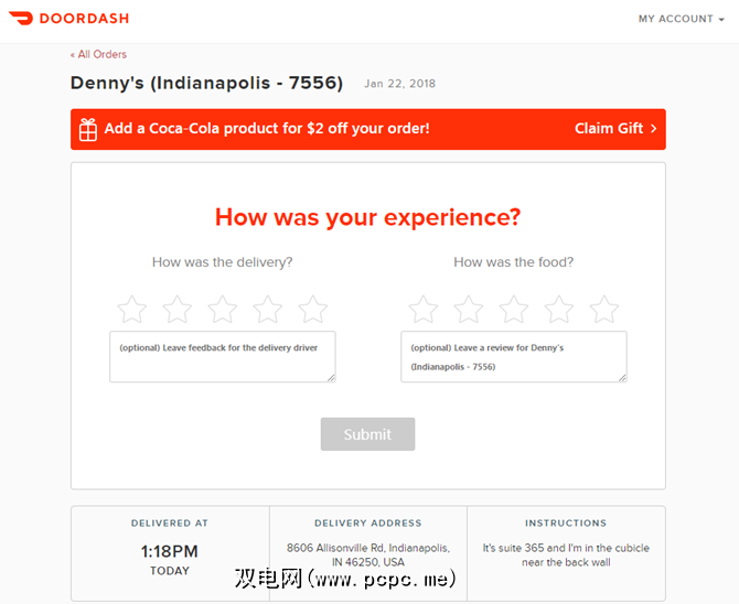 请记住,并非每种交付体验都是相同的。我曾经在早上9:30使用Doordash向丹尼的餐厅订购早餐,直到11:30我才收到订单。更糟糕的是,食物和咖啡都很冷。但是,在与Doordash的10个订单中,这是我唯一的糟糕经历。对这些驱动程序评分不佳,应将其冲洗干净。