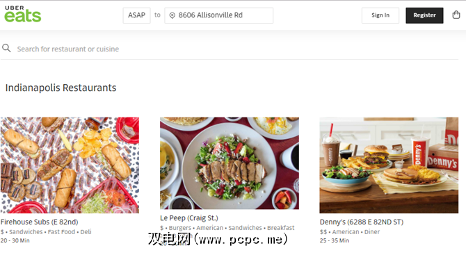 首次访问UberEats网站时,您会在搜索字段中找到可以输入地址的地方。