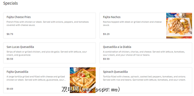 当您单击所需的餐厅时,您会发现一个非常全面的菜单,据我所知,它包含了餐厅常规菜单上的几乎所有东西。