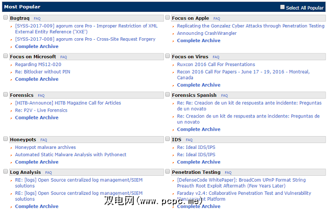该论坛分为14个部分:错误跟踪,Apple,Windows,Microsoft,病毒,取证,蜜罐,IDS,日志分析,渗透测试,安全外壳,安全性基础,Web应用程序安全性,无线安全性和西班牙语。如果您想了解用户所说的所有内容,则每个部分都可以使您订阅邮件列表。