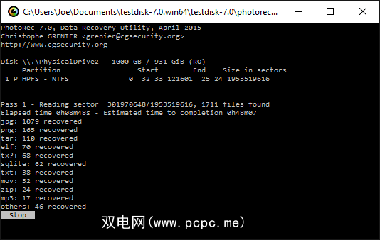 与Recuva和Disk Drill不同,PhotoRec没有精美的用户界面,并且通过命令行提供支持。尽管如此,它仍然非常易于使用,并会指导您完成每个步骤。