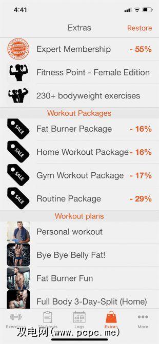 基本版本是免费的,提供的锻炼数量有限,但是您需要升级到完整版本,才能真正释放应用程序的真正潜力。