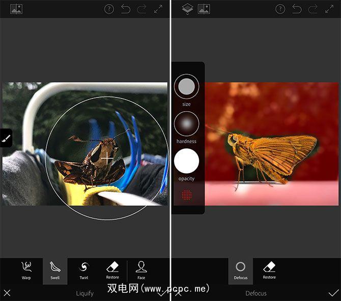 Photoshop Fix不会尝试成为完整版,成熟的照片编辑器,但是它可以很好地完成一些任务。两个突出的功能是液化工具,它可以让您混合和拉伸图像以进行微妙或古怪的调整;散焦罩是完美的伪装景深的镜头。