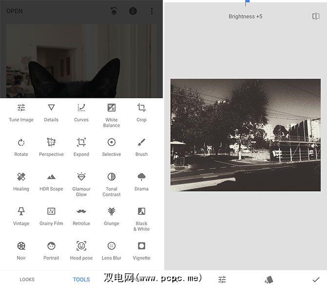 除了Snapseed称为Looks的多个滤镜之外,还有令人眼花editing乱的编辑阵列工具可供选择。这些范围从基础到透视图转换,选择性着色,即时HDR以及广泛的单色滤镜和选项。