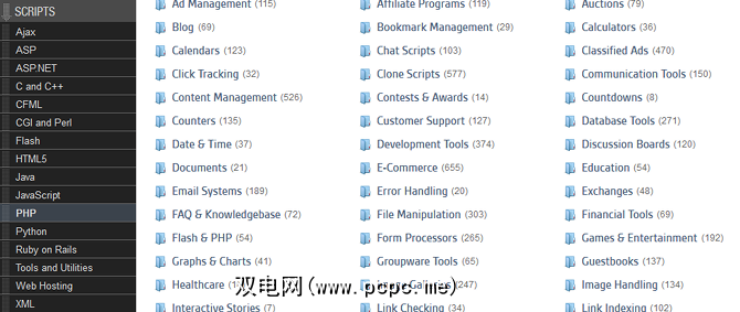 HotScripts运行着网络上最大的免费脚本集合。仅PHP类别就有9700多个脚本可以下载,但是您还会找到其他类别,例如HTML5,JavaScript和Flash,它们也被证明是有用的。