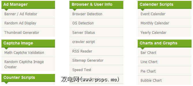 PHP脚本分为数十种子类别-太多,无法在此处列出。我们只能说这个存储库非常庞大。可以对每个脚本进行评级和审查,因此您知道哪些脚本值得尝试或跳过。