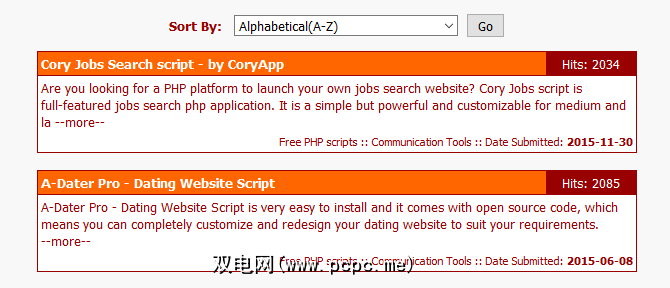 我更喜欢ScriptDungeon的界面。感觉仍然像是90年代,但是一切都更容易浏览。另外,您可以按结果或流行程度对结果进行排序,而对于HotScripts则无法做到。