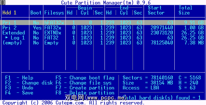 Cute Partition Manager是基于文本的分区管理器。该应用程序每个磁盘最多支持100个分区,并支持高级分区参数,例如启动标志和分区类型。