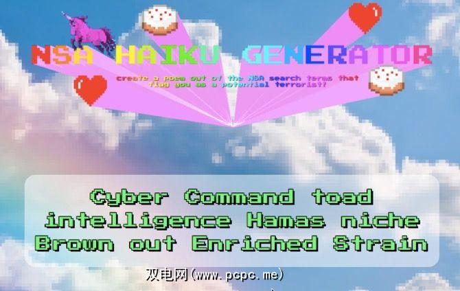 国家安全局不是无聊的去处之一。因此,即使彼此之间只说几句话,您也不会将NSA和诗歌联系起来。但是这个自动的haiku生成器设法将其完成。因此,继续前进,用奇妙的音节怪异的混搭来激发您最大的想象力。